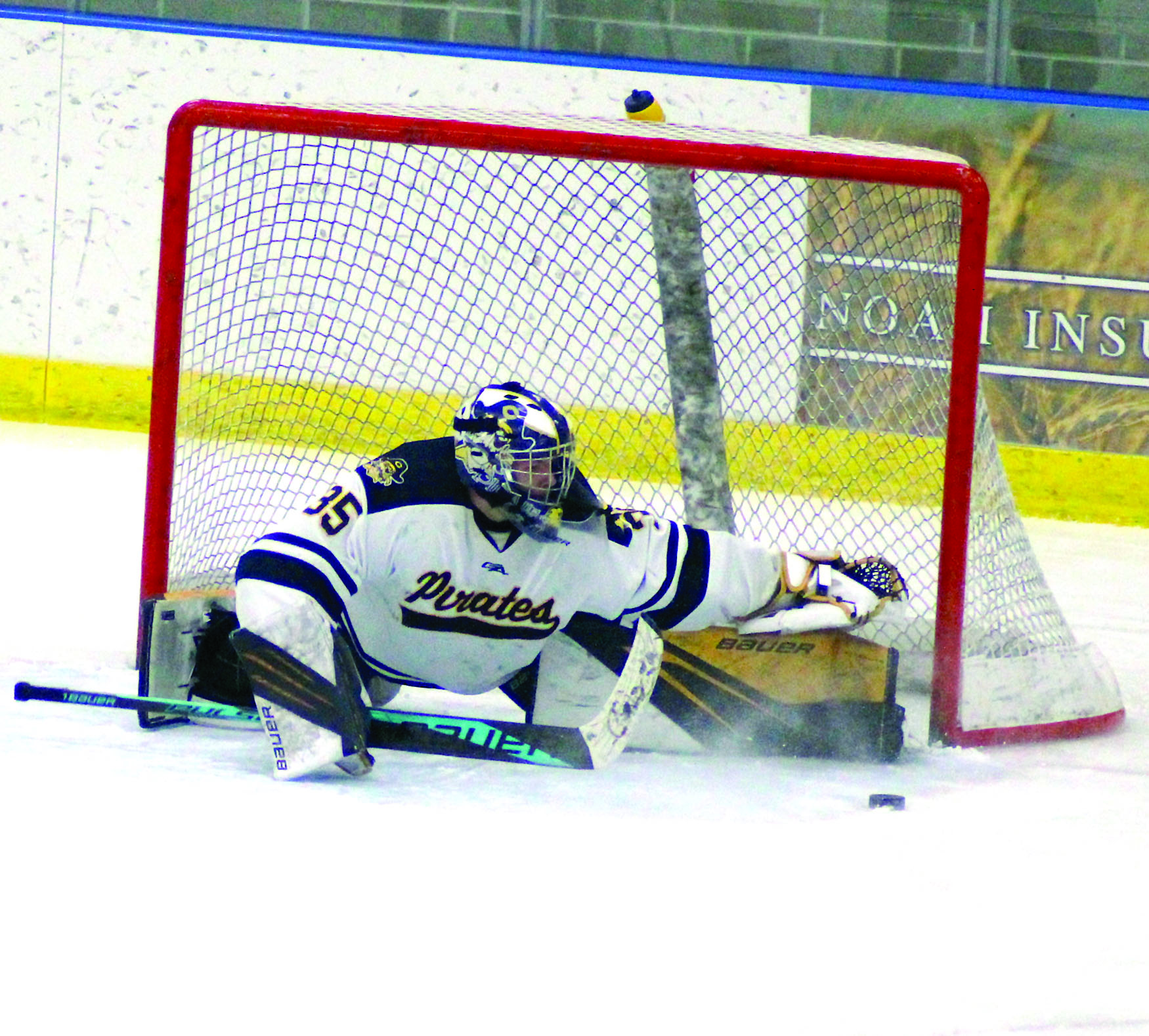 Crookston senior goaltender Teegyn Johnson made the most of his second start of the season Friday, Dec. 26 with a 25-save shutout in the Pirates’ 4-0 win over Grafton/Park River at the Ralph Engelstad Arena in Thief River Falls.